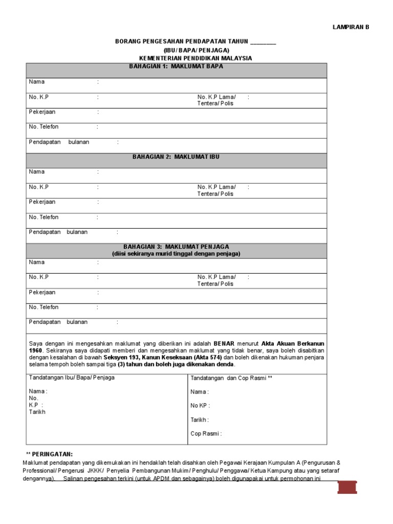 Borang Pengesahan Pendapatan Lampiran B Pdf
